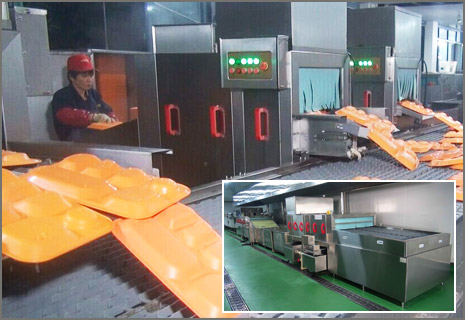 超潔凈自動洗碗機,滿足食堂餐飲具高標準洗滌要求。 潔:洗滌效果,雙重除菌消毒,潔凈度不同凡響。 節:清洗、沖洗、漂洗、烘干總功率僅為36Kw,節能50%左右。 可選用板鏈式餐具傳送機或繩式餐具傳送機。 將餐廳餐具直接傳送到洗碗間,并可與超潔凈自動洗碗機良好對接。 產品及參數請致電18305260317或點擊查看產品