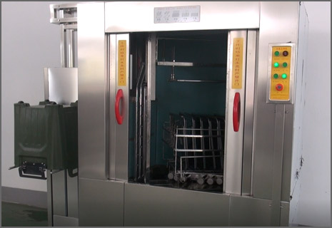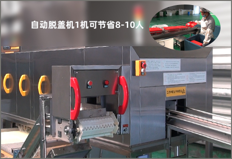 采用自動化程度高、功能全、速度快的大型全自動全功能洗碗機流水線。 超寬(超長)的外型,超潔凈的核心技術,超大清洗量,不用人工初洗,不用專用洗滌劑,純物理清洗消毒,滿足塑料及不銹鋼餐盒或餐盤高標準洗滌要求。 餐盒自動脫蓋機,可與大型全自動全功能餐盒清洗流水線有效配合,只需一人操作,在餐盒自動脫蓋機進口處放入帶蓋的餐盒,在洗碗機出口處收集餐盒即可,省去8-10人脫蓋除渣。 大型周轉箱清洗機、洗桶機。 產品及參數請致電18305260317或點擊查看中央廚房整體潔凈方案